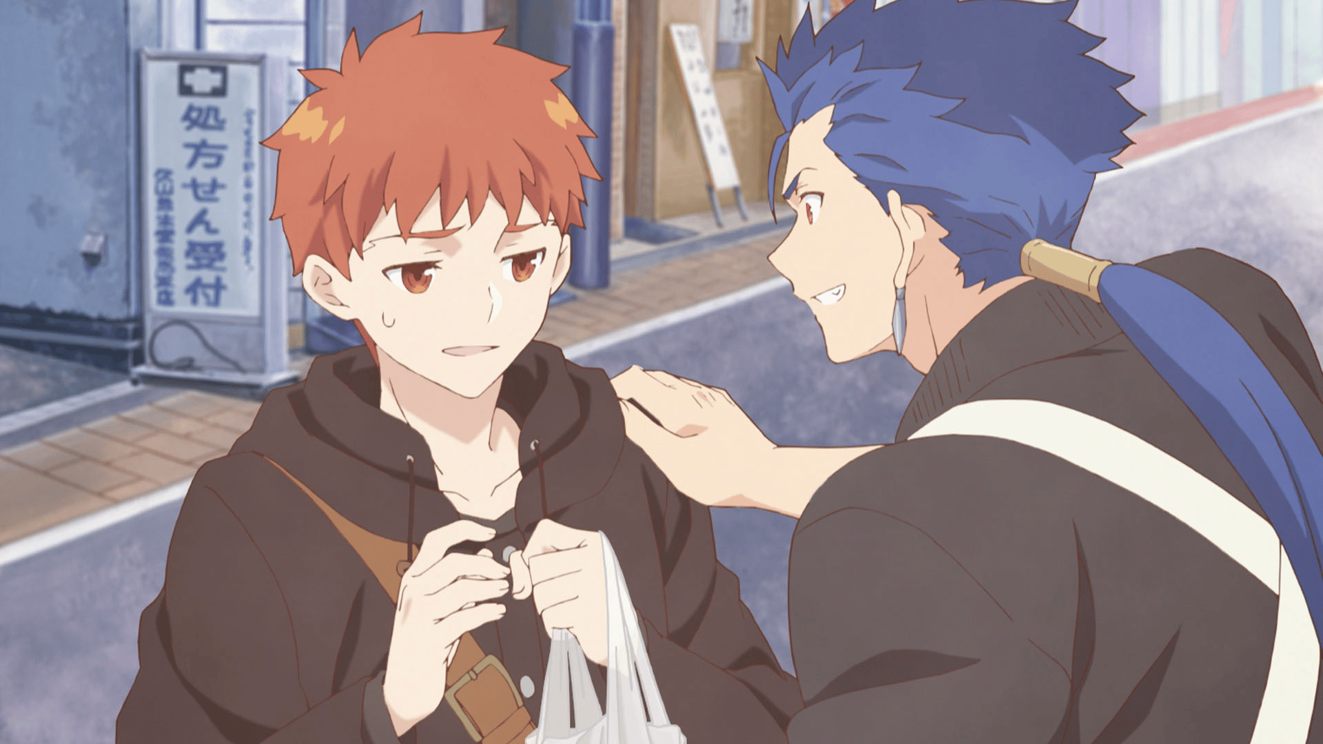 夕飯の買い出しに来た士郎。献立を考えながら商店街を歩いていると、魚屋で店番をしているランサーに出会う。士郎は鮭を使った料理を作ることを決めたが、何故かランサーが衛宮家に夕飯を食べにくることになり…