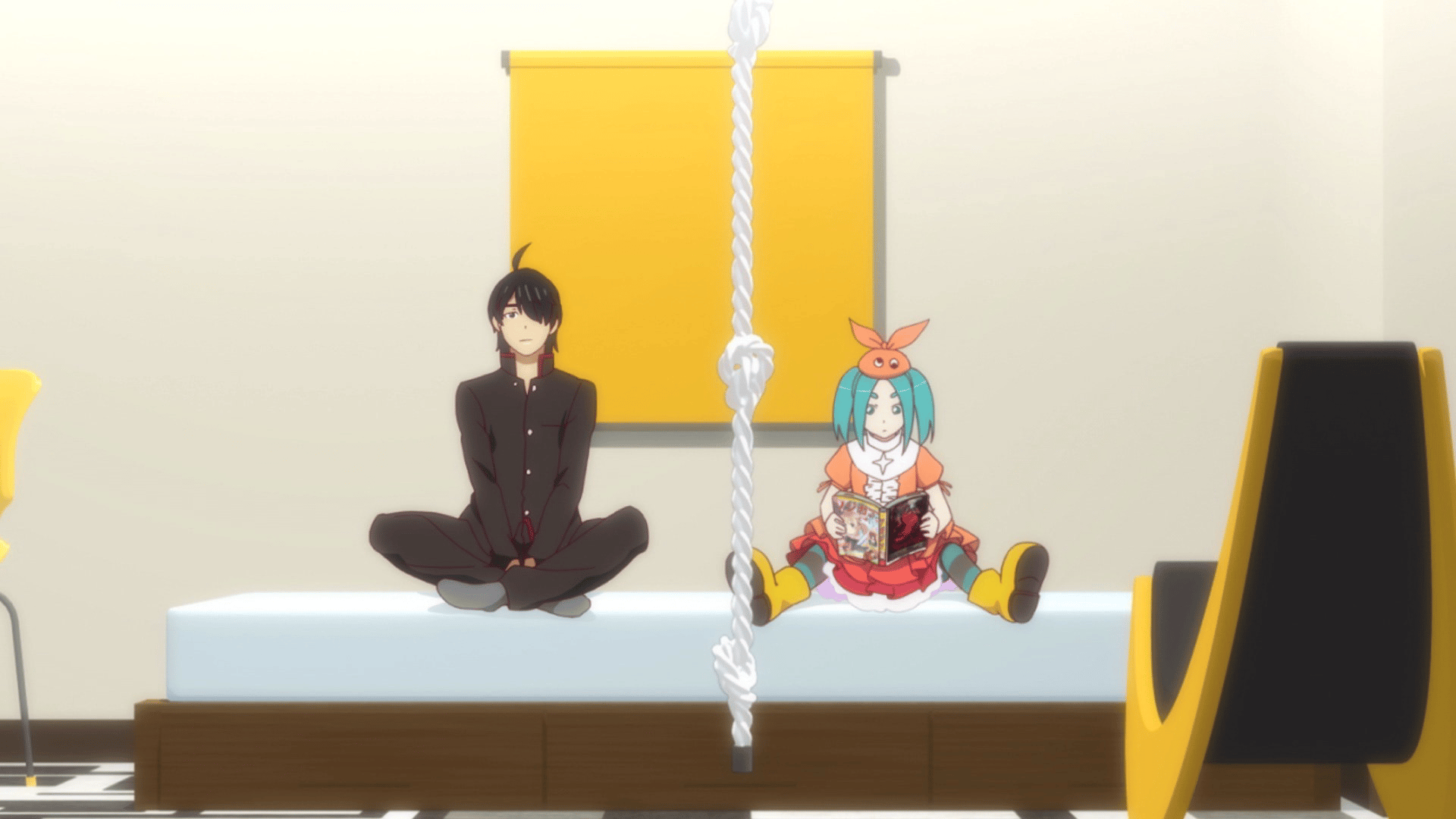 - 阿良々木月火を監視するため、阿良々木家に潜入している斧乃木余接。月火が学校に行っている間、のびのびと過ごしている余接だったが、突然帰ってきた月火に動いている姿を目撃されてしまった。
